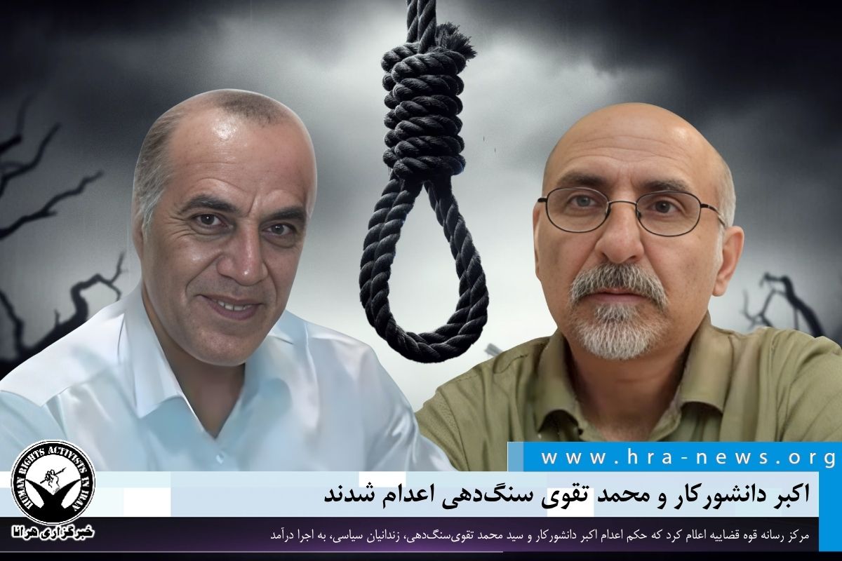 خبرگزاری هرانا – مرکز رسانه قوه قضاییه اعلام کرد که حکم اعدام اکبر دانشورکار و سید محمد تقویسنگدهی، زندانیان سیاسی، سحرگاه امروز دوشنبه ۱۰ فروردین ماه به اجرا . . .